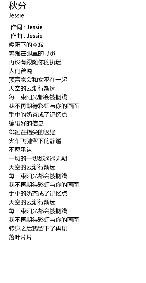 | [00:00.000] | 作词 : Jessie |