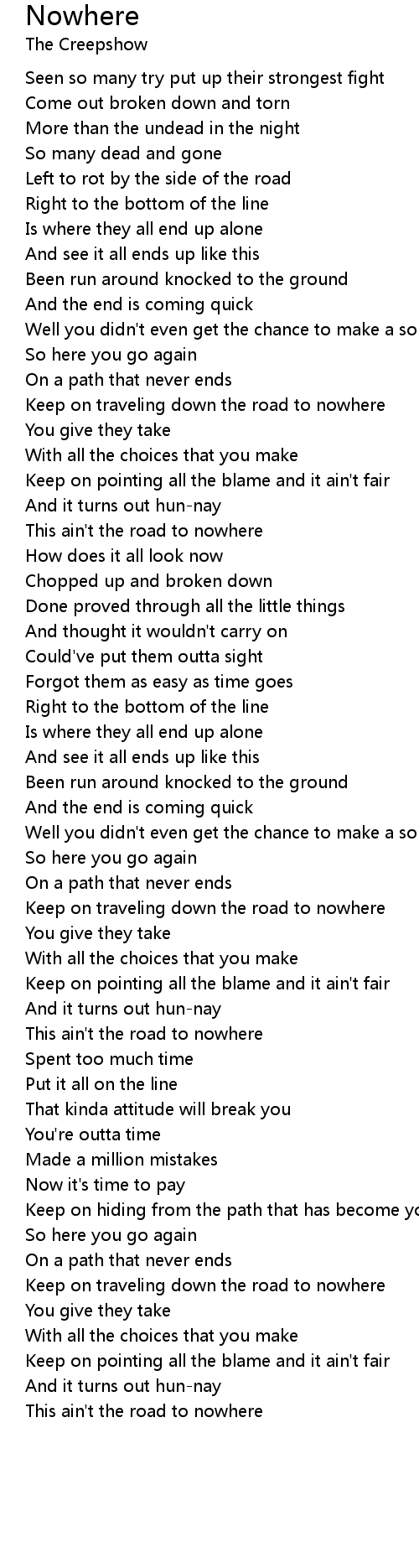 Keep on traveling down the road to nowhere