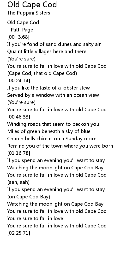 (Cape Cod, that old Cape Cod) |