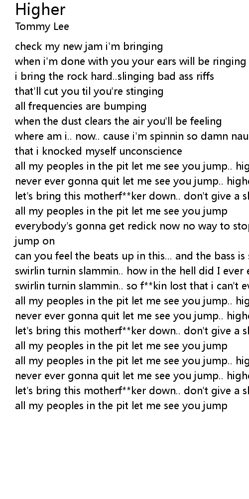 let's bring this motherf**ker down.. don't give a shit.. higher.. higher