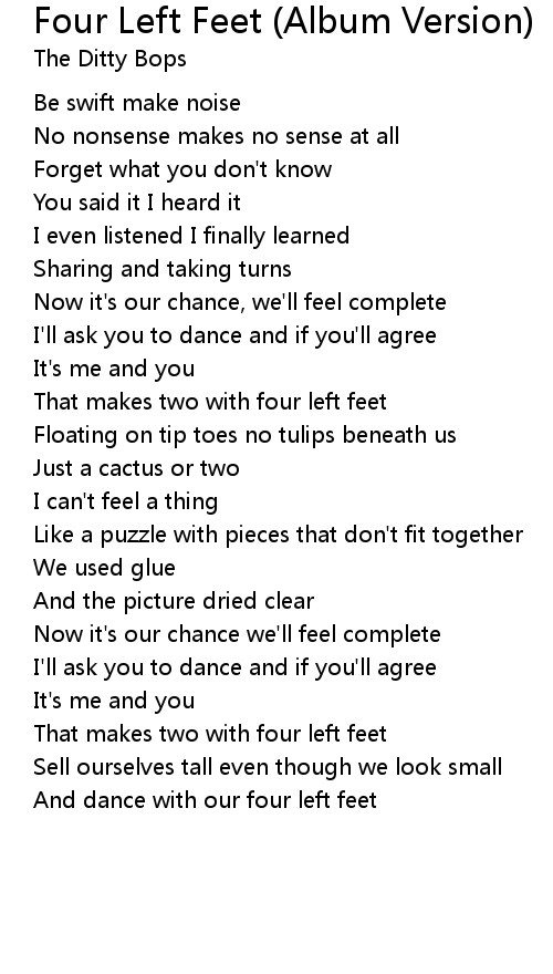 And dance with our four left feet |