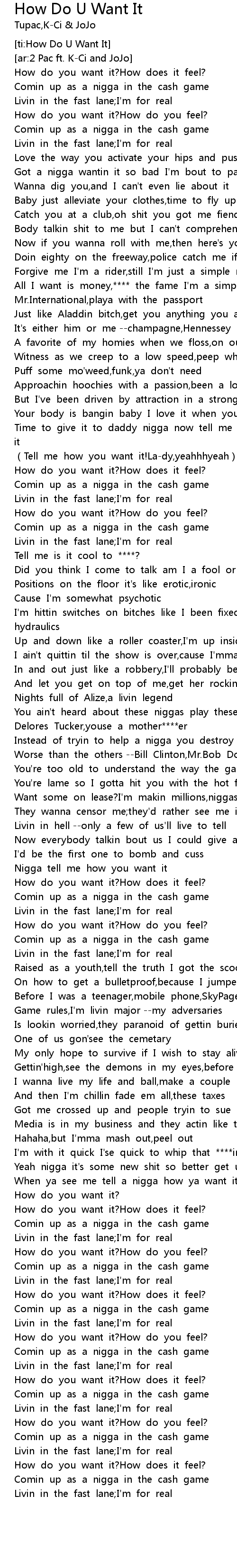 | [01:13.31] | Time to give it to daddy nigga now tell me how you want it |