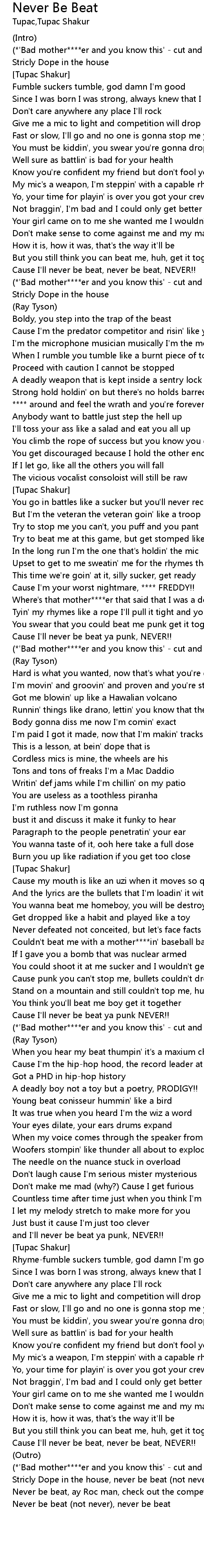 Cause I'll never be beat, never be beat, NEVER!! |