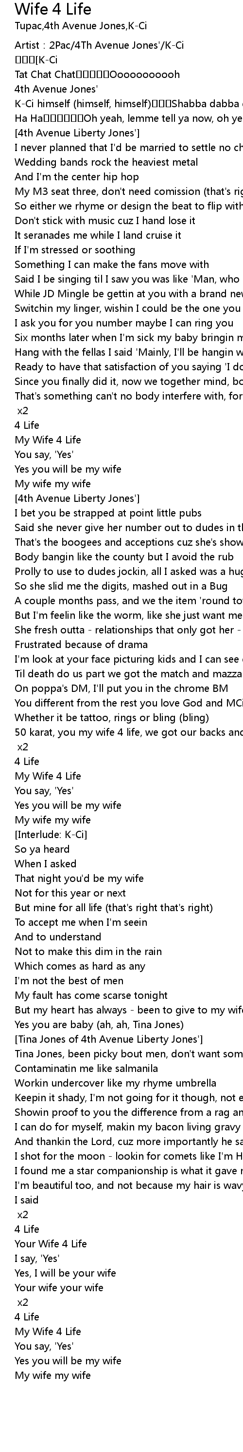 | 50 karat, you my wife 4 life, we got our backs and it's apparent | |