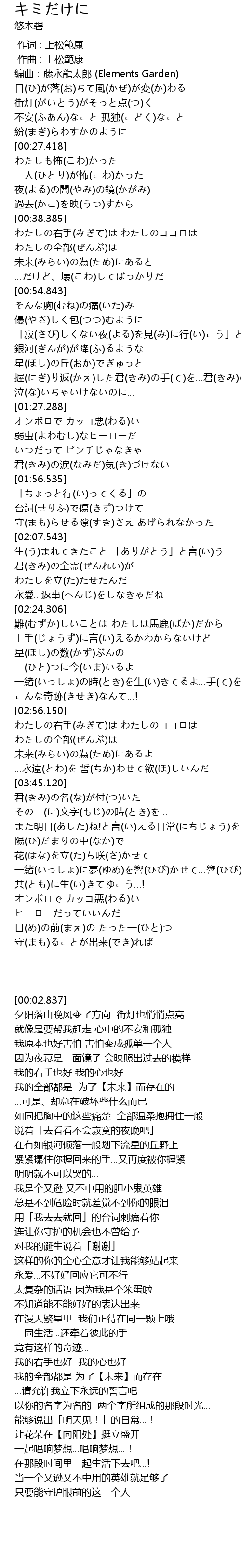| [00:44.218] | わたしの全部(ぜんぶ)は 未来(みらい)の為(ため)にあると |