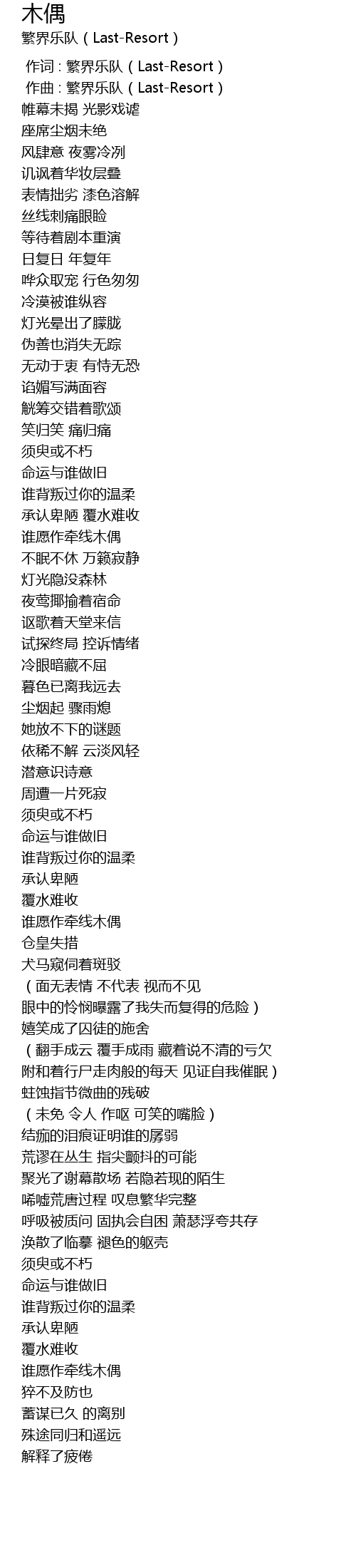 | [00:00.000] | 作词 : 繁界乐队(Last-Resort) |