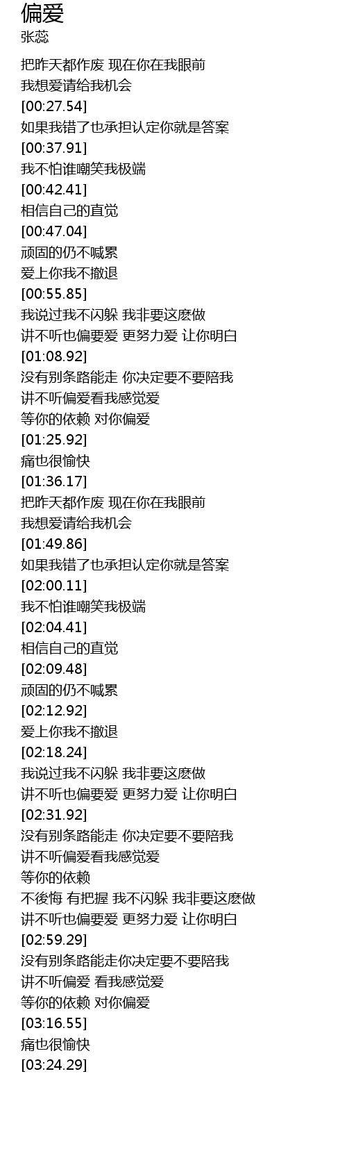 | [03:06.17] | 讲不听偏爱 看我感觉爱 |