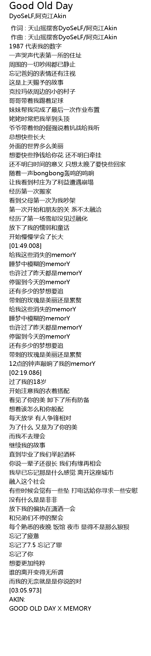 | [03:07.728] | GOOD OLD DAY X MEMORY |