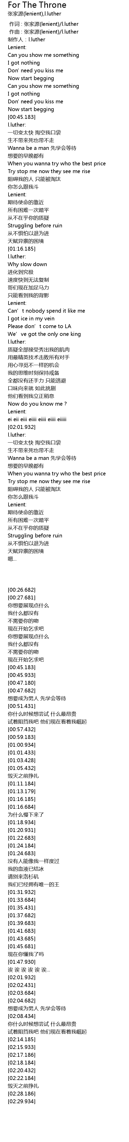 | [00:01.000] | zuo qu : zhang jia yuan lenient l. luther |