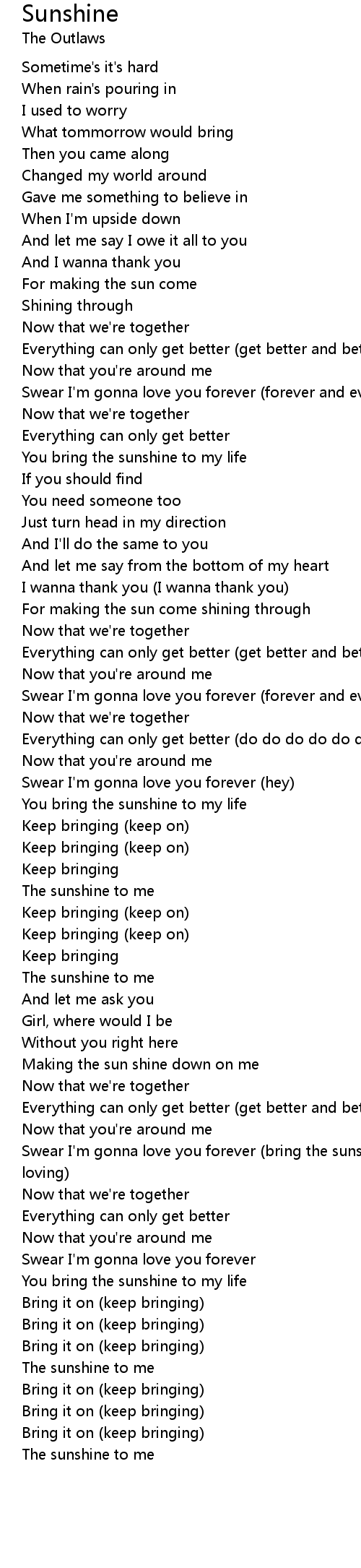 You bring the sunshine to my life |