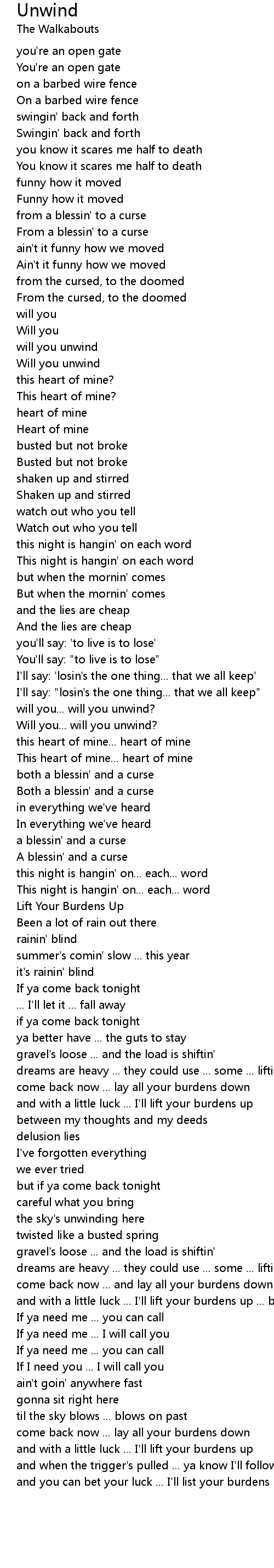 and you can bet your luck ... I'll list your burdens up ... burdens up |