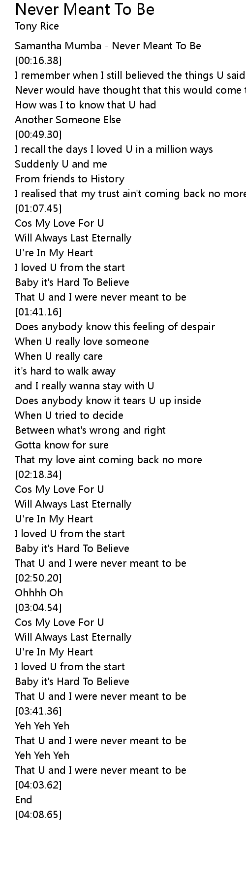Samantha Mumba - Never Meant To Be |