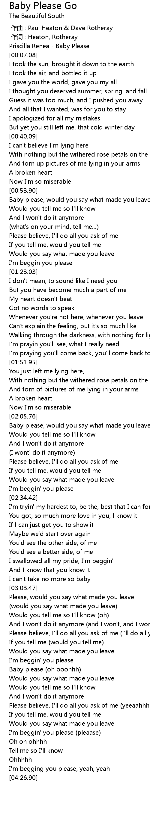 | [03:32.43] | Baby please oh ooohhh |