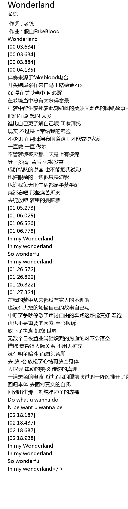 | [00:01.000] | 作曲 : 假血FakeBlood |