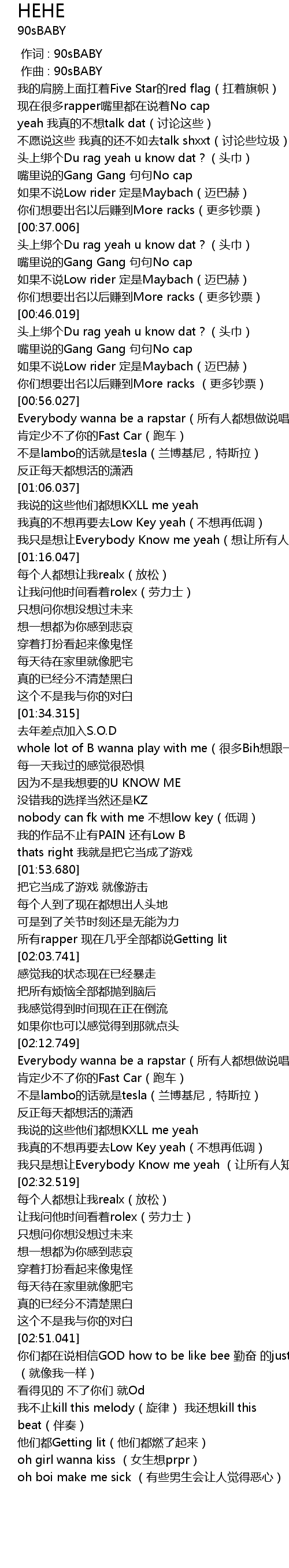 | [02:02.283] | suo you rapper xian zai ji hu quan bu dou shuo Getting lit |