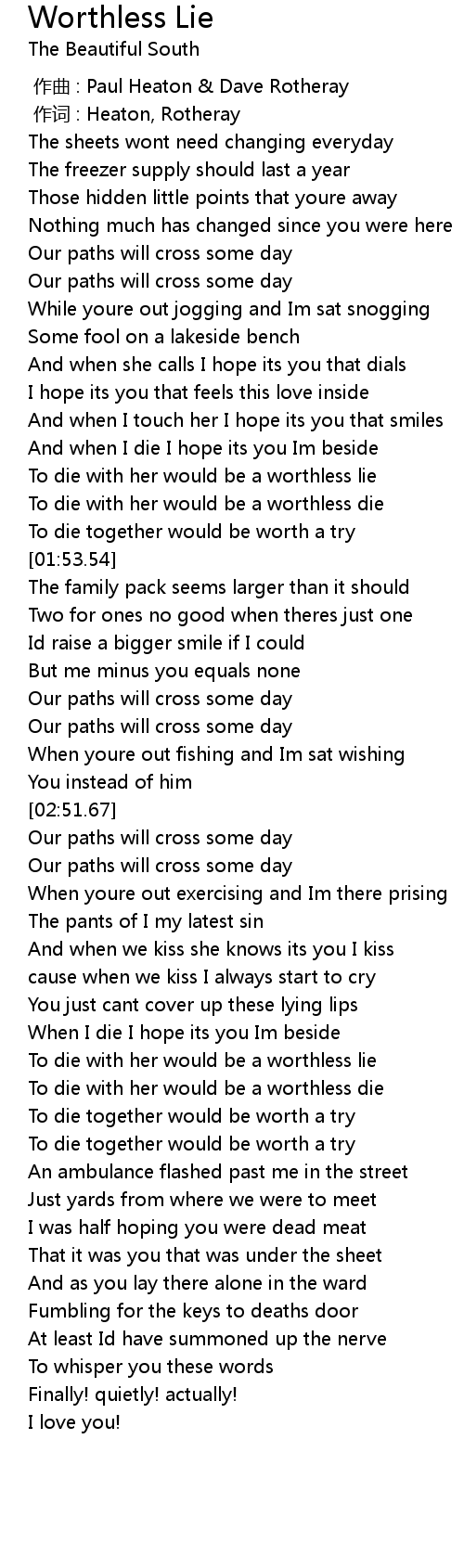 | [03:35.83] | To die with her would be a worthless lie |