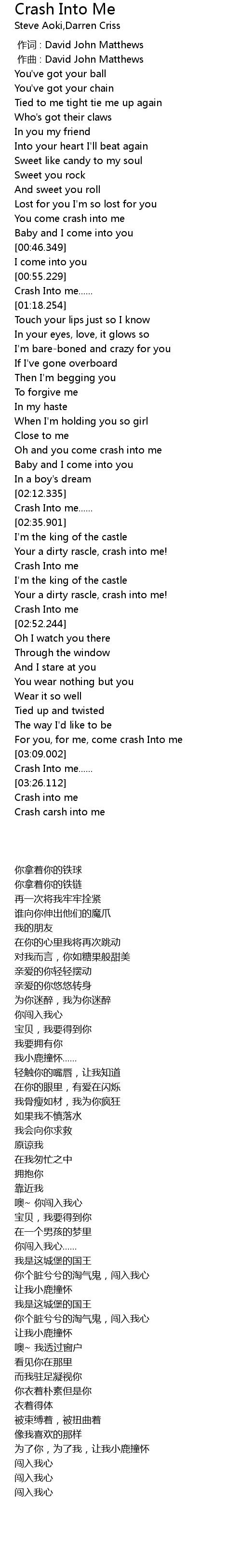 | [03:38.684] | Crash into me |
