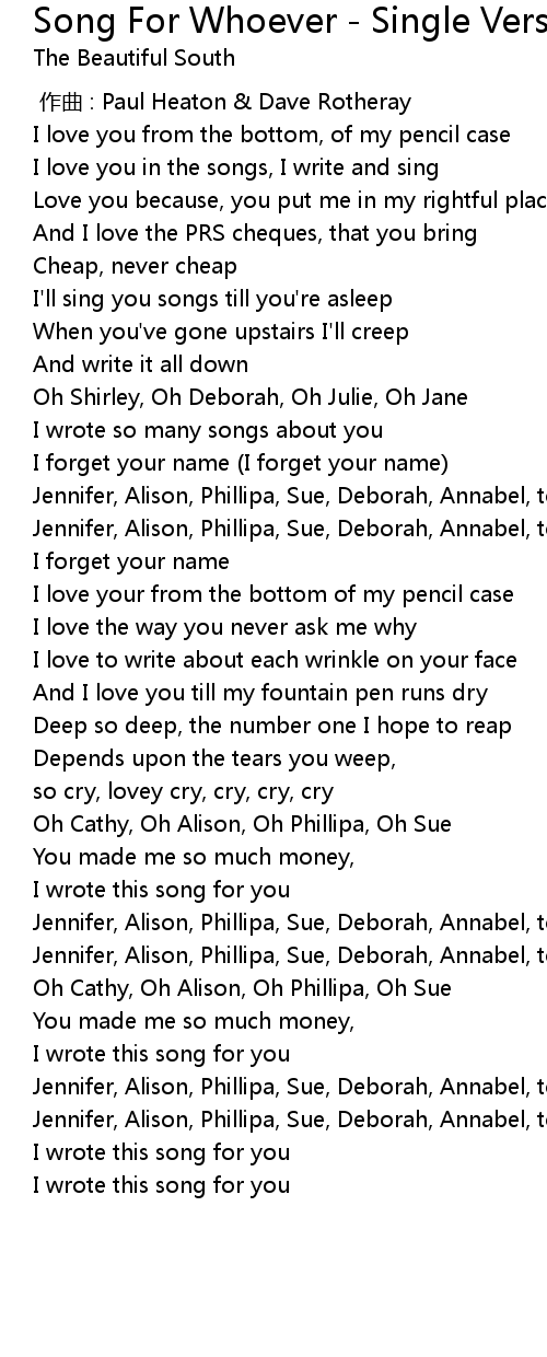 | [00:00.00] | 作曲 : Paul Heaton & Dave Rotheray |