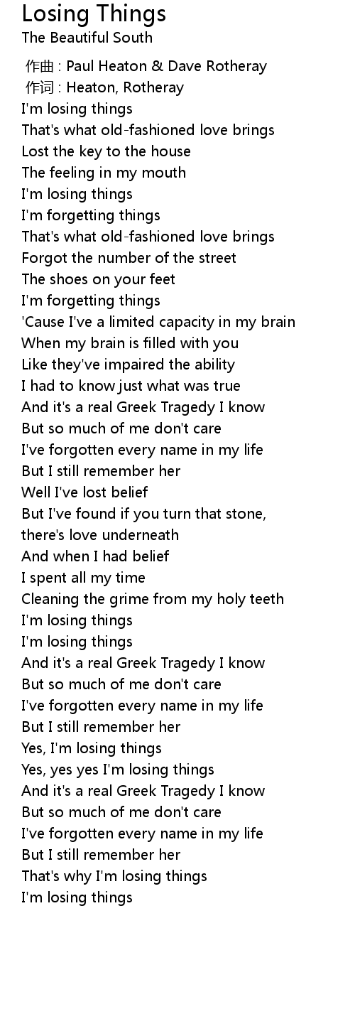 | [02:02.97] | Yes, yes yes I' m losing things |