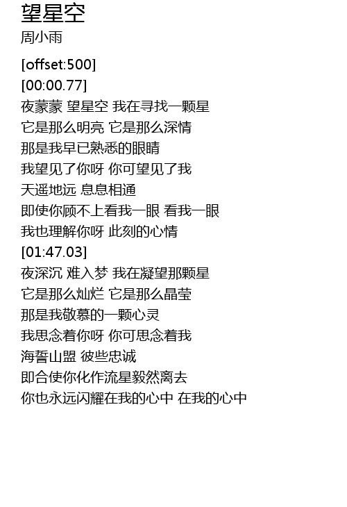 | [00:23.19] | 夜蒙蒙 望星空 我在寻找一颗星 |