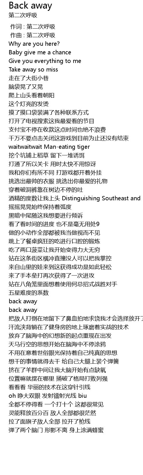 | [00:00.000] | 作词 : 第二次呼吸 |