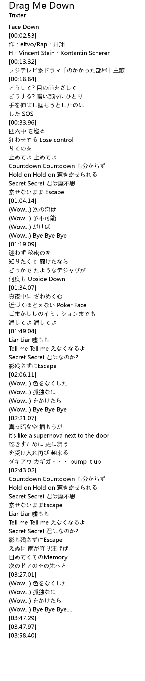 | [02:17.57] | (Wow...) Bye Bye Bye |