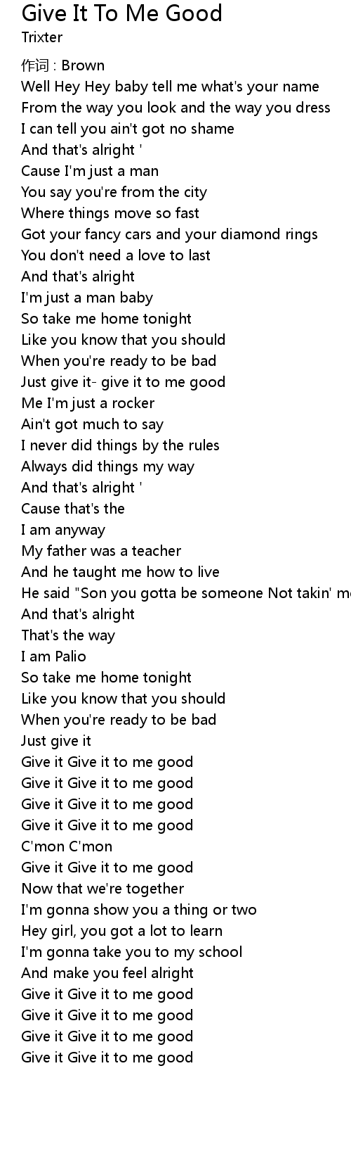 | Just give it give it to me good | |
