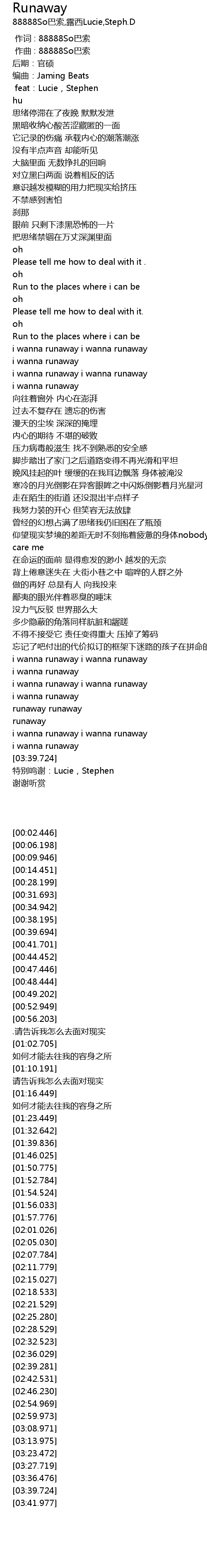 | [03:41.977] | 特别鸣谢:Lucie,Stephen |