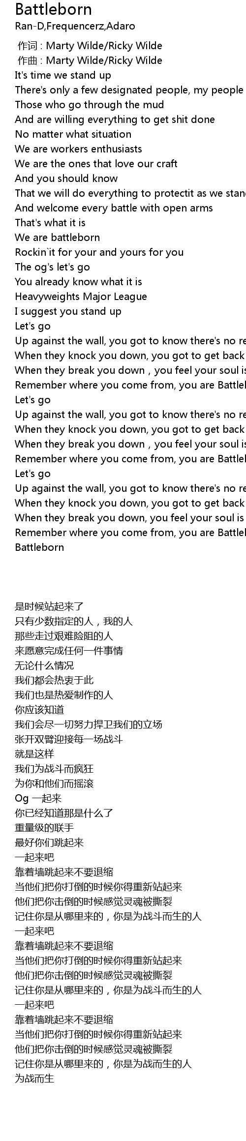 | [01:02.71] | We are battleborn |