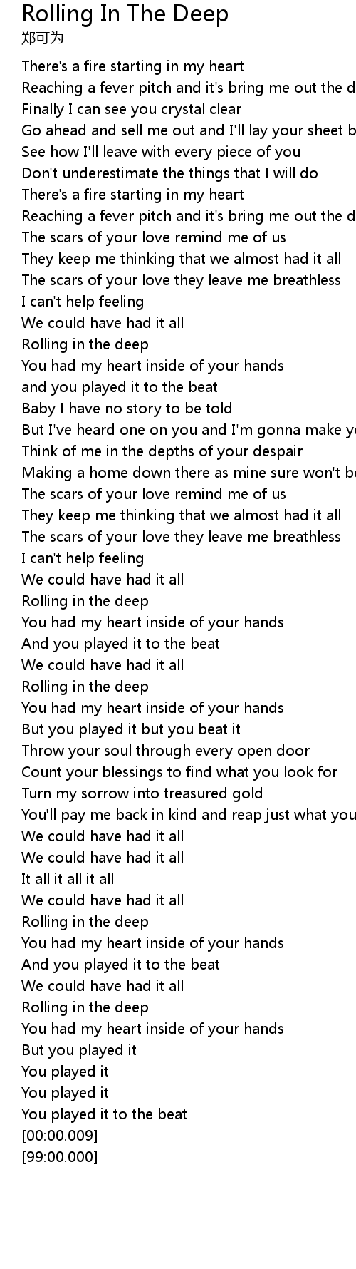 | [02:27.93] | Rolling in the deep |