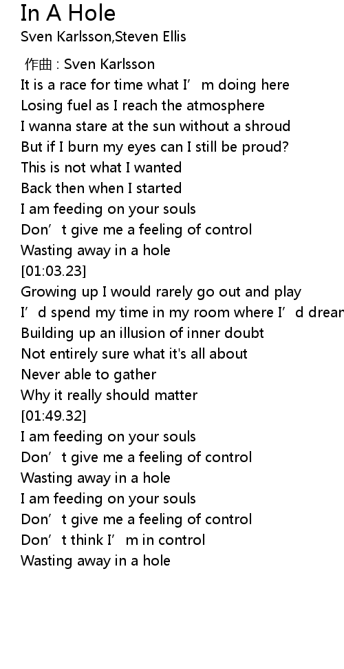 | [02:54.01] | Wasting away in a hole |