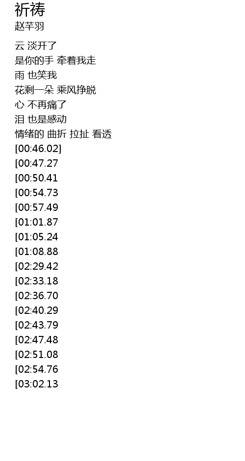 | [03:18.15][02:33.18][01:19.45] | 祈祷自己所有不快乐 |