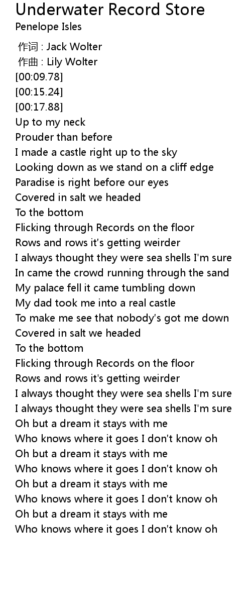 | [00:57.40] | I always thought they were sea shells I' m sure |