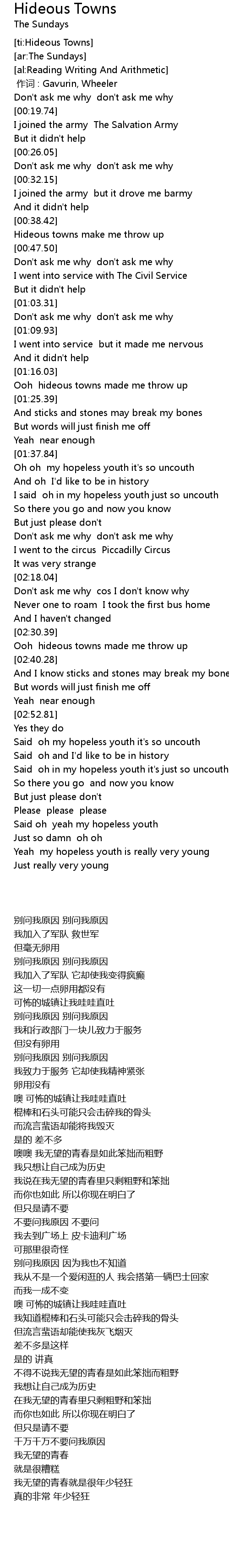 | [02:32.92] | Ooh hideous towns made me throw up |