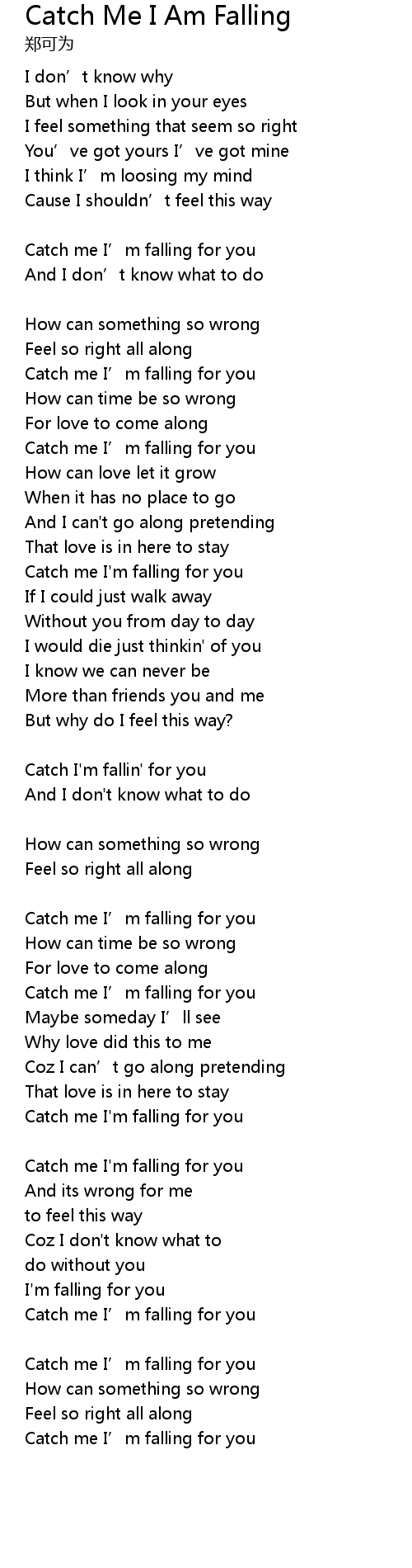 | Catch me I' m falling for you |