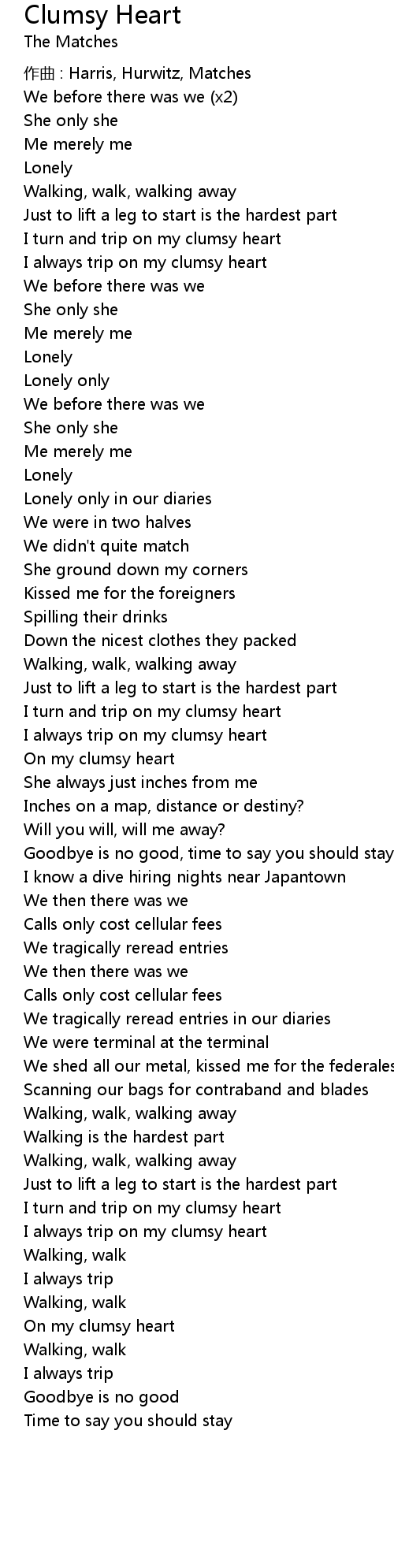 | I always trip on my clumsy heart | |