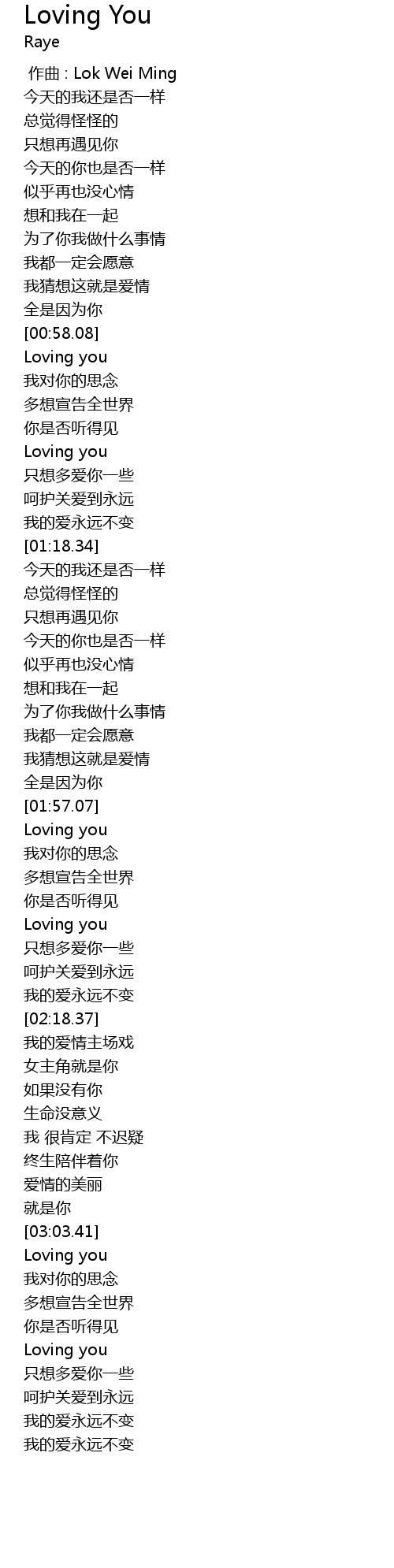 | [03:03.96] | Loving you |