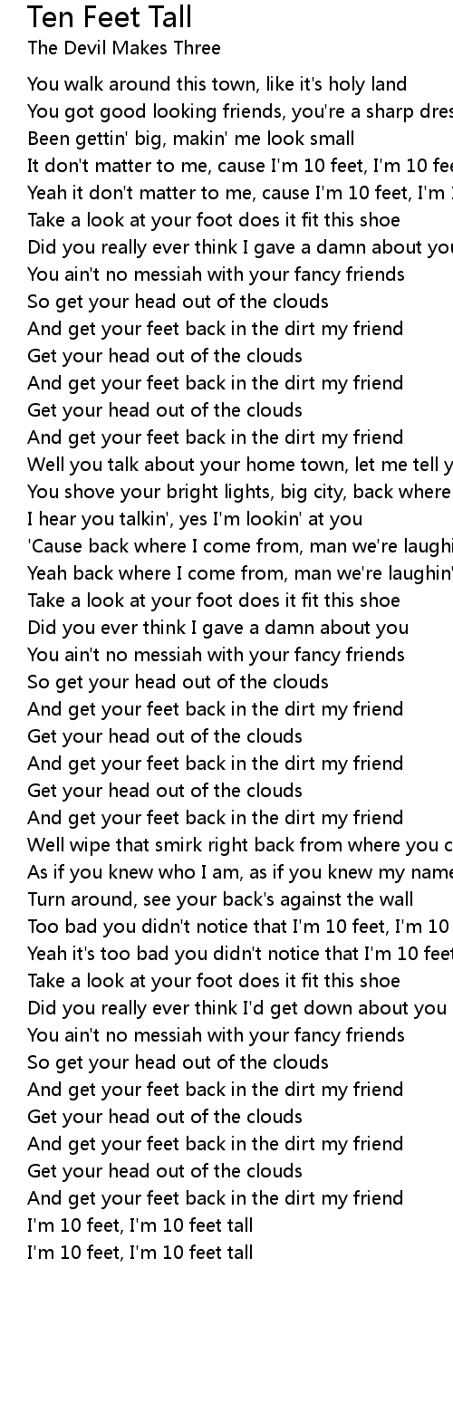 It don't matter to me, cause I'm 10 feet, I'm 10 feet tall |