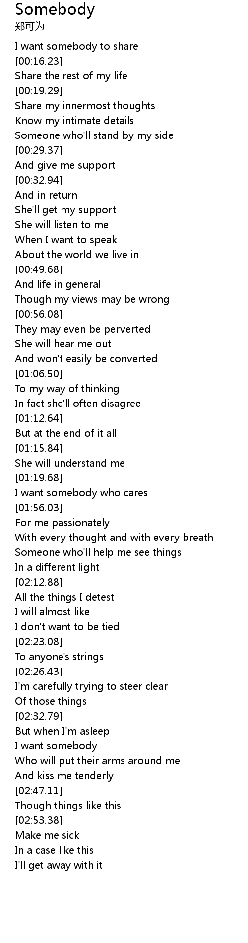 I want somebody to share |