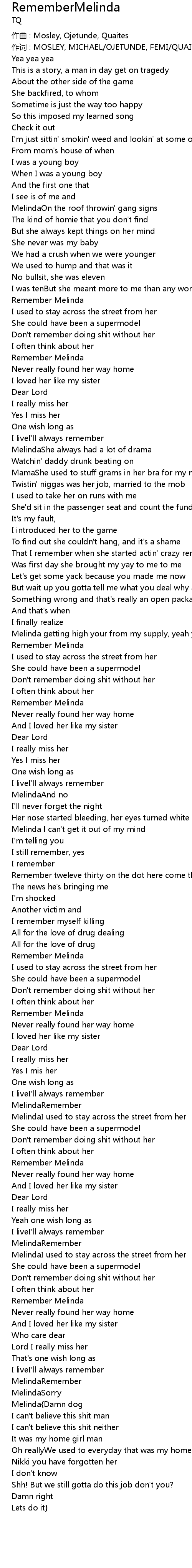 | 歌曲 | RememberMelinda |