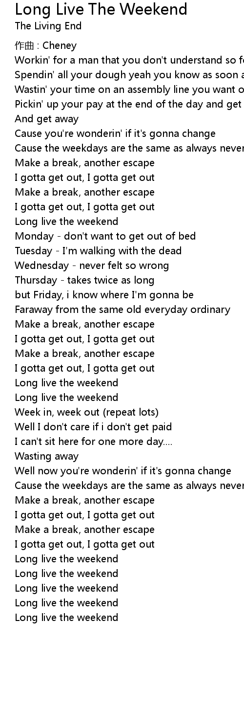 | 歌曲 | Long Live The Weekend |