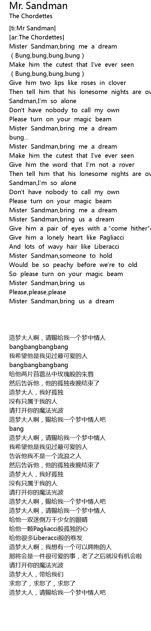 | [ti:Mr Sandman] | |