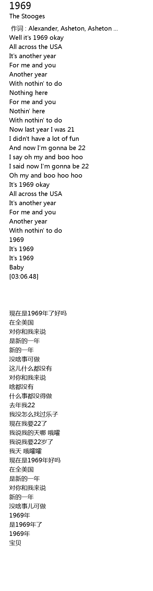 | [00:00.00] | 作词 : Alexander, Asheton, Asheton ... |