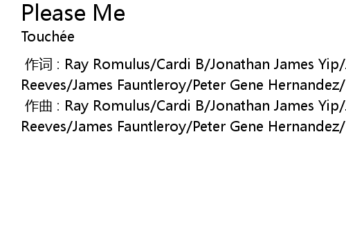 | [00:00.00-1] | zuò qǔ : Ray Romulus Cardi B Jonathan James Yip Jeremy L Reeves James Fauntleroy Peter Gene Hernandez Ray Charles II McCullough |