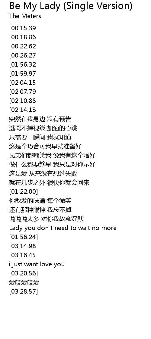 | [02:51.65][00:26.27] | Now its time for you to be my lady |