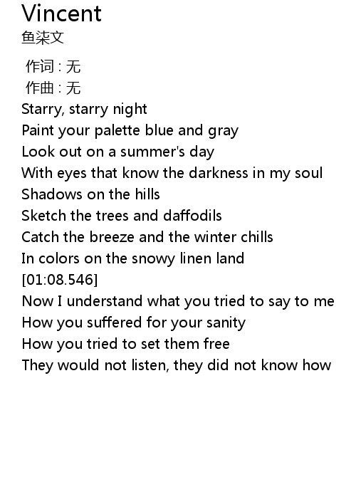 | [00:20.300] | Starry, starry night |