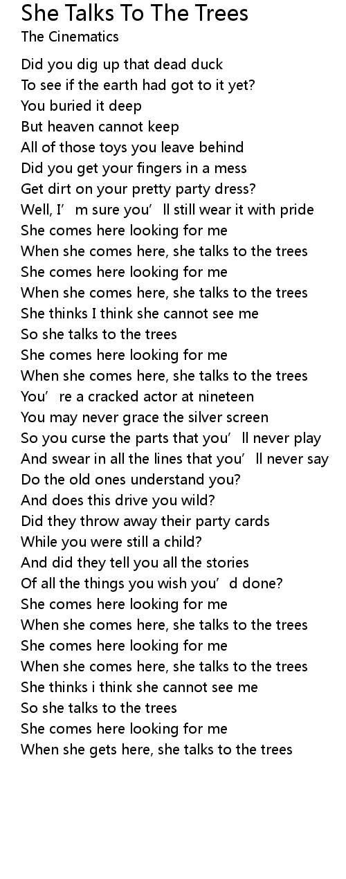 | So she talks to the trees | |