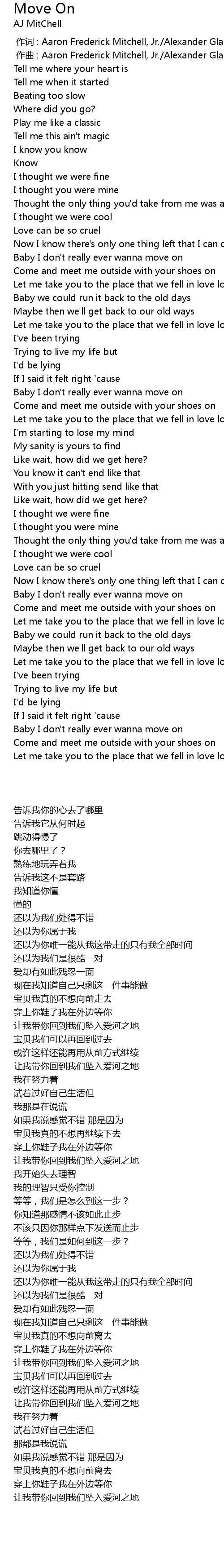| [00:00.00] | 作词 : Aaron Frederick Mitchell, Jr./Alexander Glantz/Jesse Fink |