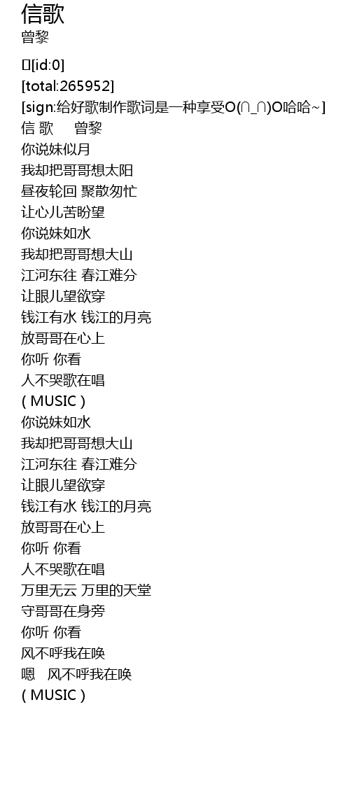 | [00:03.674] | 信 歌 曾黎 |