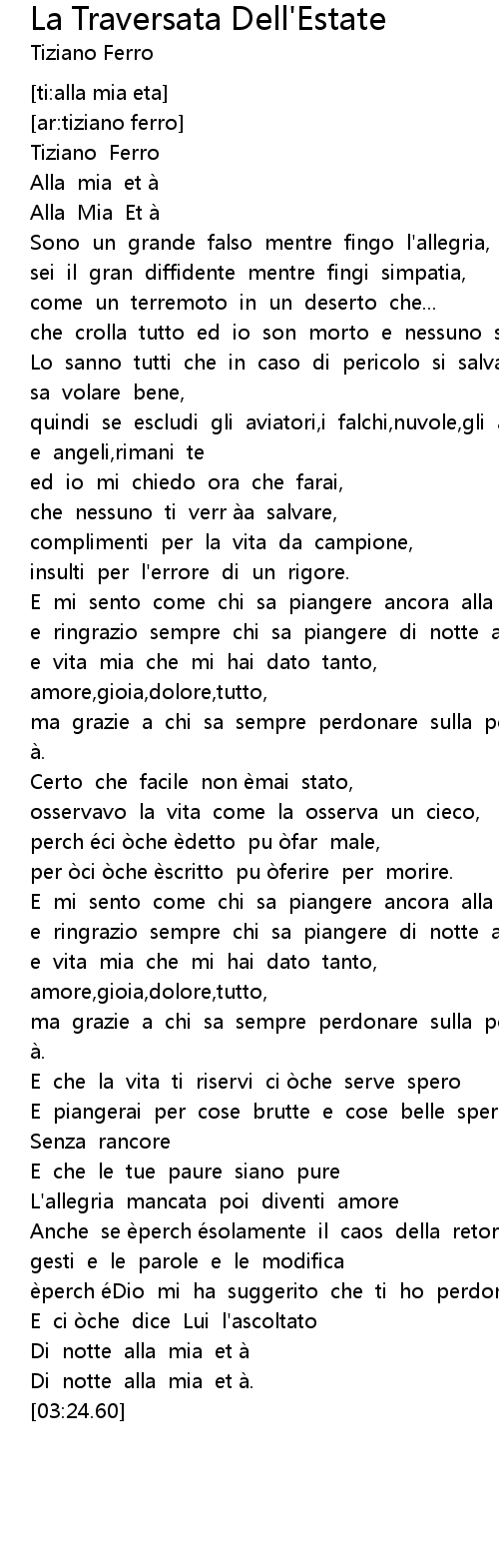 | [02:54.10] | L' allegria mancata poi diventi amore |